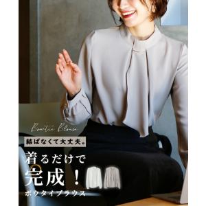トップス ブラウス ボウタイ ボウタイブラウス 着映え ドッキング スタンドカラー 長袖 グレージュ アイボリー