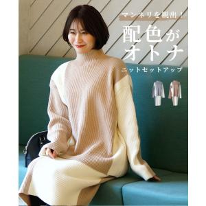 配色 バイカラー ニット セットアップ 配色 休日きれいめ リブニット リブ 伸縮性 トップス