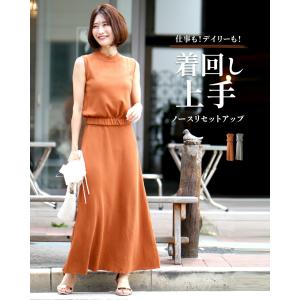 セットアップ ノースリ ノースリーブ スカート ロングスカート セット テラコッタ カーキ Terracotta Khaki 茶 緑