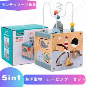 知育玩具 モンテッソーリ おもちゃ 玩具 教具 海洋生物 ルーピング 5 in 1 セット 型はめ 色合わせ 指先遊び 練習 子供 こども 誕プレ 0歳 1歳 2歳 ベビー 早期