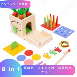 知育玩具 モンテッソーリ 玩具 おもちゃ 教具 型はめ コイン入れ お魚釣り 8 in 1 セット 歯車 ギアー パターンボード 串通し 子供 こども 誕プレ 0歳 1歳 2歳