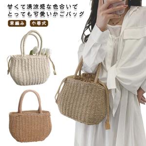 お花見 浴衣 レディース 草編み 巾着式 ハンドバッグ 夏 可愛い 巾着付き 手提げ ペーパーストローバッグ かごバッグ バスケット型 ナチュラル か
