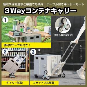 【2025年最新キャリーカート】3Wayコンテナキャリー 折りたたみ式 MC-L755-KI 50L 大容量 階段 段差 ダブルキャスター アウトドア 花見 台車 ハンドキャリー