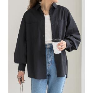 ブラウス シャツ ボリュームスリーブ ポケ付きストライプシャツ レディース