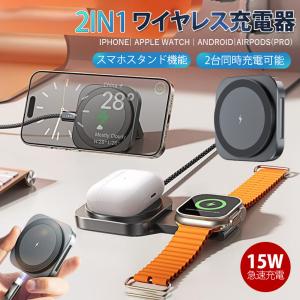 ワイヤレス充電器 2in1 MagSafe 充電器 iphone充電器 アップルウォッチ充電器 置くだけ 急速充電 充電スタンド 平置き 折り畳み