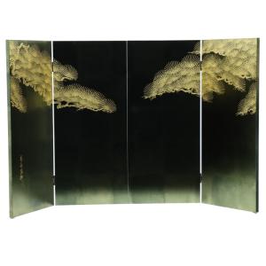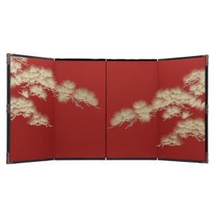 アウトレット品 屏風単品 四曲屏風 20号 エンジ 松 レトロ アートスタンド 26a-ya-0881