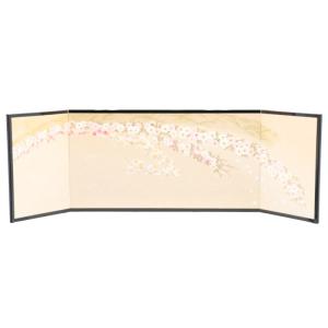 アウトレット品 屏風単品 三曲屏風 15号 薄黄白色 刺繍丸梅に流水 レトロ アートスタンド 26a-ya-0950