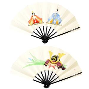 (ひな祭り/兜)飾り扇子/黒染竹両面手描き扇子/ゴマ竹台付き(Ta20)