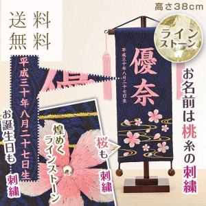 名前旗 ひな祭り お名前・お誕生日入り 刺繍 ぼかし桜(紺) 小サイズ 名物裂 桃糸刺繍 ラインストーン