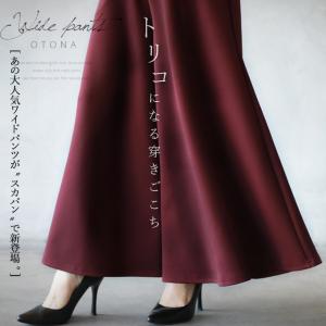 パンツ レディース ワインレッド ロング ワイド フレア 光沢感 総ゴム ゆったり 体型カバー きれいめ シンプル トリコになる穿きごこち OTONA 40代 50代 60代