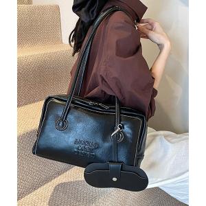 ボストンバッグ 「アイウェアケース付き」レザータッチエンボスロゴボストンバッグ/ショルダーバッグ レディース