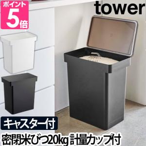山崎実業 米びつ 米櫃 こめびつ ライスストッカー 密閉 おしゃれ tower タワー 密閉米びつ 20kg 計量カップ付 5425 5426
