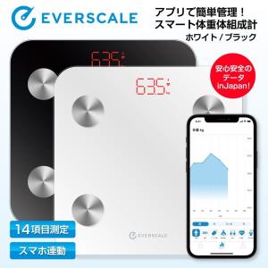 体重計 スマホ連動 Bluetooth 体組成計 EVERSCALE | 体脂肪率 BMI 筋肉量 骨量 水分率 基礎代謝 内臓脂肪 アプリ 自動入力 健康管理 白 黒 シンプル ES-001