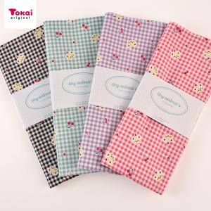 tiny animal's ぷりんにゃらもーど シーチング 1m カットクロス | 生地 布 はぎれ カット布 キャット チェック柄 コットン100% アンニョン 韓国テイスト 韓国