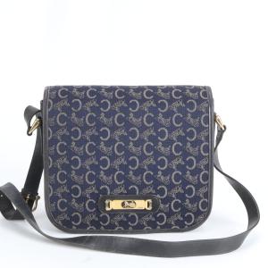 美品 ヴィンテージ セリーヌ Cマカダム 馬車金具 レザー ショルダーバッグ 斜め掛け クロスボディ ネイビー レディース RWE DO41-1
