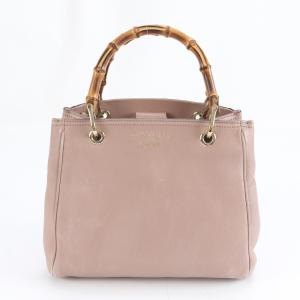 グッチ バンブー ショッパー スモール 336032 レザー ハンドバッグ トート ピンク レディース RRE DL24-10
