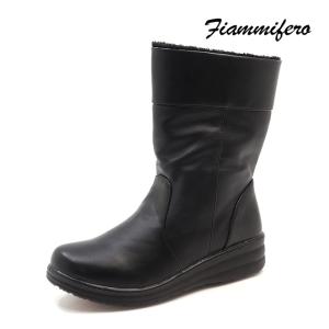 フィアンミーフェロ レディース ウィンターブーツ ブラック 防滑 防寒 ピンスパイク 滑りにくい ミドル ボア ファー サイドジップ スノー 黒 Fiammifero DH-5605