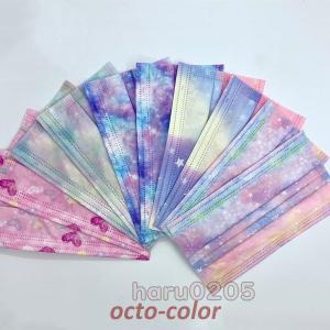 マスク 100枚 使い捨て 不織布マスク おしゃれ グラデーション 大人用 子供用 キッズ 3層構造 ウイルス対策 星柄 星空 イベント 学園祭 親子マスク