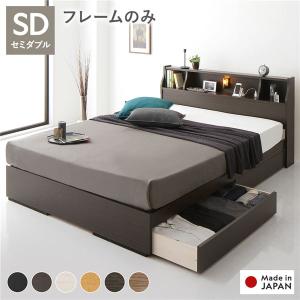 ベッド セミダブル ベッドフレームのみ ブラウン 収納付き 照明付き 棚付き コンセント付き 木製 日本製 組立品