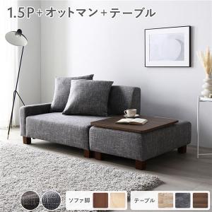 ソファセット コンパクトカウチ 〔 1.5人掛け オットマン アッシュグレー テーブルトレイ ブラウン 脚:ブラウン 〕 組立品