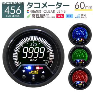 オートゲージ タコメーター 車 60mm 60Φ 4色バックライト 456シリーズ 日本製ステッピングモーター ピークホールド 追加メーター 後付け AUTOGAUGE