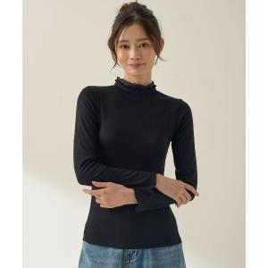 インナーシャツ 肌着 「まるで毛布!のような暖かさ・厚手」リブ首元メローハイネックレース付き長袖 レディース
