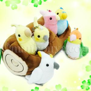 10%OFF インコ ぬいぐるみ 小鳥 雑貨 携帯ストラップ カラフルインコと切り株セット