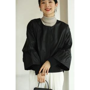 ジャケット ノーカラージャケット ハードになりすぎない フリル袖 エコレザー レディース