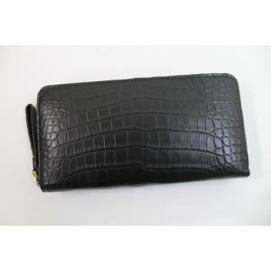 【5のつく日限定11%クーポンあり】ゴールド金具 ブラック クロコダイル 長財布 財布 メンズ 本革 ラウンド 一枚革 センター取り 内側もクロコダイル本革