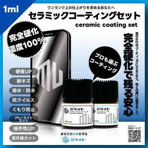 ミライト プロ仕様 完全硬化型スマホコーティング セラミックコーティング剤セット 1ml ガラス濃度100% 硬度9H 耐久UP 紫外線カット キズ防止 撥水効果 10年持続