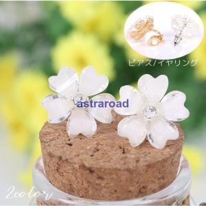 イヤリング ピアス レディース 女性用 アクセサリー ネジバネ 花 フラワーモチーフ シルバーカラー ゴールドカラー ラインストーン かわいい キュー