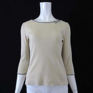 キース KEITH カットソー リブ コットン ボーダー 切替 リボン 7分袖 M 38 ベージュ オフ白 茶 ブラウン レディース