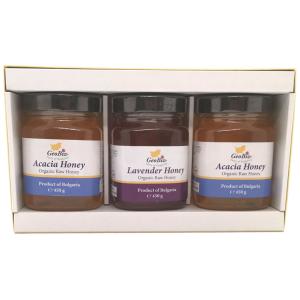 EU認定ブルガリア産オーガニックアカシアはちみつ450g2本とオーガニックラベンダーはちみつ450gのギフトセット