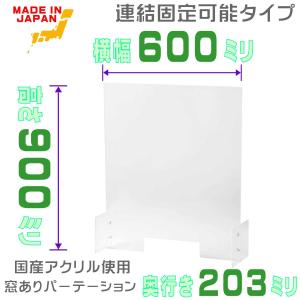 アクリル パーテーション パネル W600×H900窓あり 透明 間仕切り デスク用仕切り板 衝立 コロナ対策 組立式 飲食店