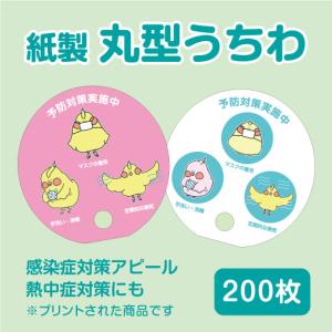 丸うちわ 小ロット コロナ対策 注意喚起 ノベルティにも! 200枚 トリ