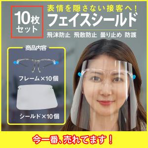 フェイスシールド10枚セット メガネ型 コロナ 対策 透明 職場 食事 宴会 会議 介護