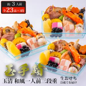 おせち 2026 玉清 和風一人前三段重 玉手箱 ( 863882 ) 約3人前 3段重 全23品×3段 生おせち 冷蔵 配送 12月31日お届け 迎春 おすすめ