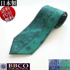 オールシーズン春夏秋冬物 日本製 ビビコ/BBCO COLLECTION×京都西陣コラボ ペイズリー 太陽マーク&ロゴ刺繍 ジャガード 絹シルクネクタイ 青/緑:F AO050112