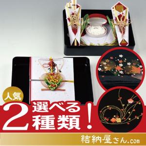 (結納返し) 略式結納品 孔雀黒塗台セット(毛せん付)
