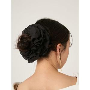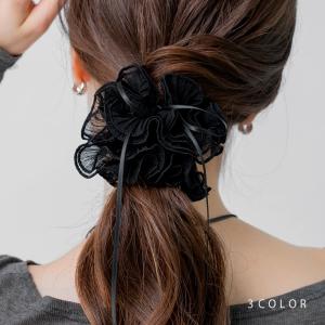 シュシュ ヘアアクセサリー リボン オーガンジー サテン 大ぶり ボリューム かわいい 大人 激安 ブラック ベージュ