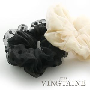 ドット柄オーガンジーシュシュ 水玉 ボリューム 大人カジュアル HS-156