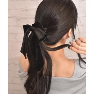 シュシュ リボン ベロア ビッグリボン 大きめ アシンメトリー ボリューム ヘアアクセサリー ヘアゴム 髪留め