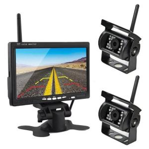 カメラ2個搭載ワイヤレスバックカメラセット 防水 暗視 無線簡単取り付け 7インチモニター12-24V兼用 2チャンネルトラックトレーラーなどに OMT77SET