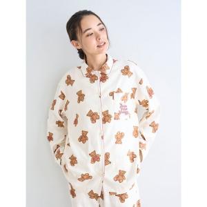パジャマ ルームウェア 「HOLIDAY」ベア柄ネルシャツ レディース