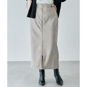 スカート スリットジップIラインスカート(伸縮あり、あったか生地、裏地なし)