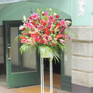 【スタンド花・花輪(開店祝い・開業祝い)】花キューピット 御祝 移転 記念日 竣工 講演会 授賞式 スタンド花お祝い1段(赤系)