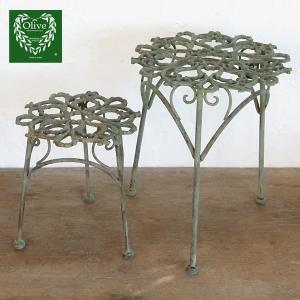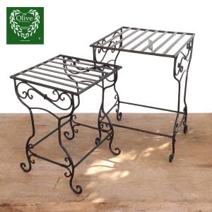 フラワースタンド 2サイズセット ガーデニング アイアン 花置き台 アンティーク デコラティブ エレガント アンティーク調 花台