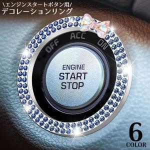 エンジンスタートボタンリング スタートボタンカバー 車用 内装 装飾 ドレスアップ デコ リボン ラインストーン キラキラ 簡単取付