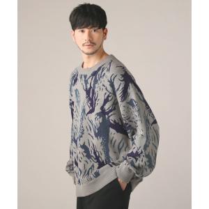 <SLICK>アブストラクトダブルジャガードプルオーバーニット