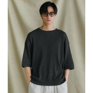 日本製「泉州」ハニカムサーマルニットガゼットクルーネック半袖スウェットライクTシャツ